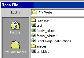 When you want to work on some web pages you previously created, you need to open up the pages from within FrontPage. If you simply find the folder where you page is save, then double-click on that web page, Windows will open up your page with Internet Explorer (or Netscape), and you will be able to see your page, but not edit it.